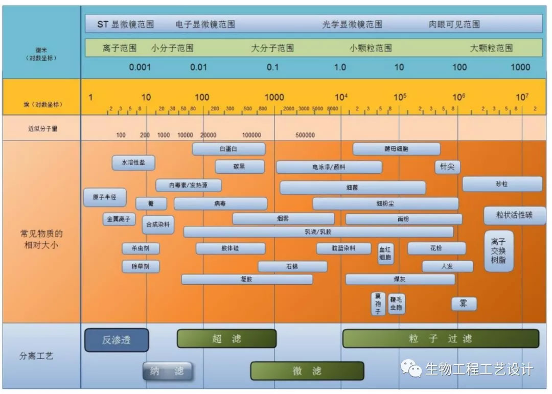 膜法液體分離(lí)技術一般工藝有:微濾(lǜ)(MF)、超濾(UF)、納濾(NF)和反滲透(RO)。